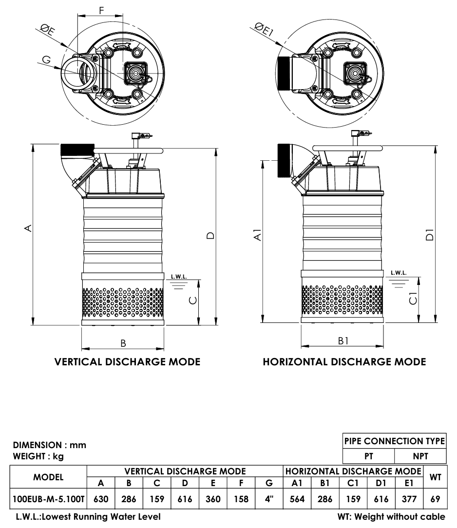 • Čerpadla řady EUB-M vynikají vysokou odolností proti opotřebení, zejména při čerpání abrazivních nečistot (písek, kamínky apod).